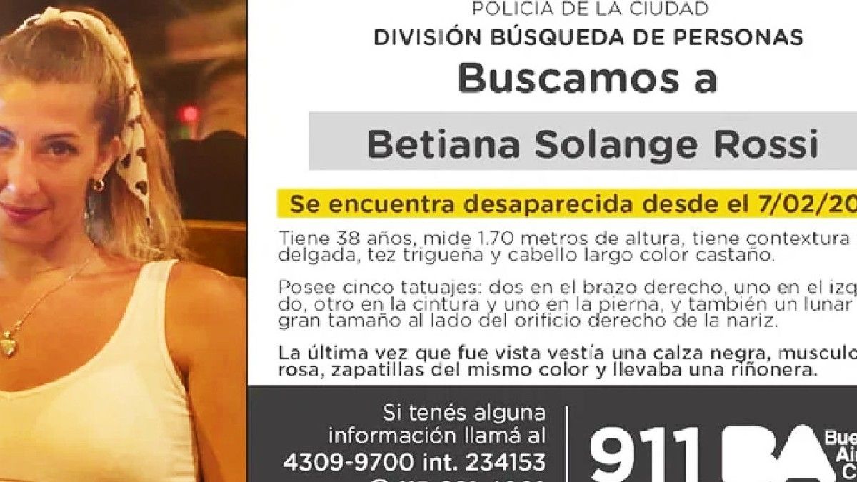 El paradero de Betiana Solange Rossi es un misterio. La mujer, de 38 años y madre de tres hijos está desaparecida desde el 7 de febrero. La Policía de la Ciudad de Buenos Aires y su familia empezó una campaña en redes sociales para dar con ella ante la incertidumbre.