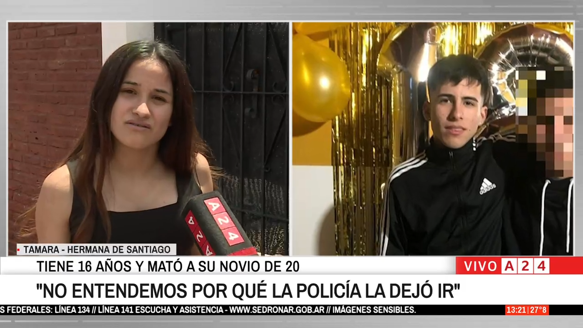 Tamara, hermana de Santiago López Monte, denunció "irregularidades" en la causa que investiga la muerte del joven de 20 años por el escape de su pareja, de 16 años, que se escapó de la escena del crimen y el operativo policial que no preservó la escena del crimen ni le brindó contención a la familia de la víctima.