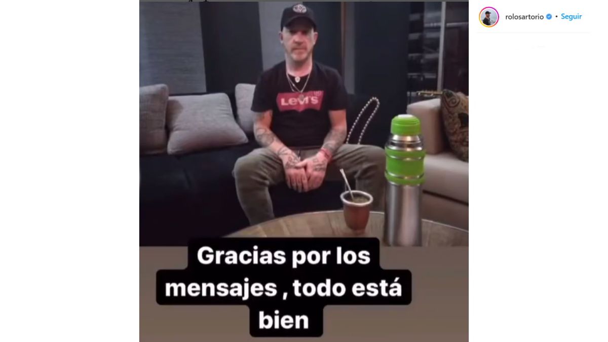 Por su parte, el cantante de La Beriso recurrió a su cuenta de Instagram (@rolosartorio) para romper el silencio desde su feed. “Gracias por los mensajes, todo está bien”, aseguró el músico junto a una foto donde se lo ve sentado junto a un set de mate.