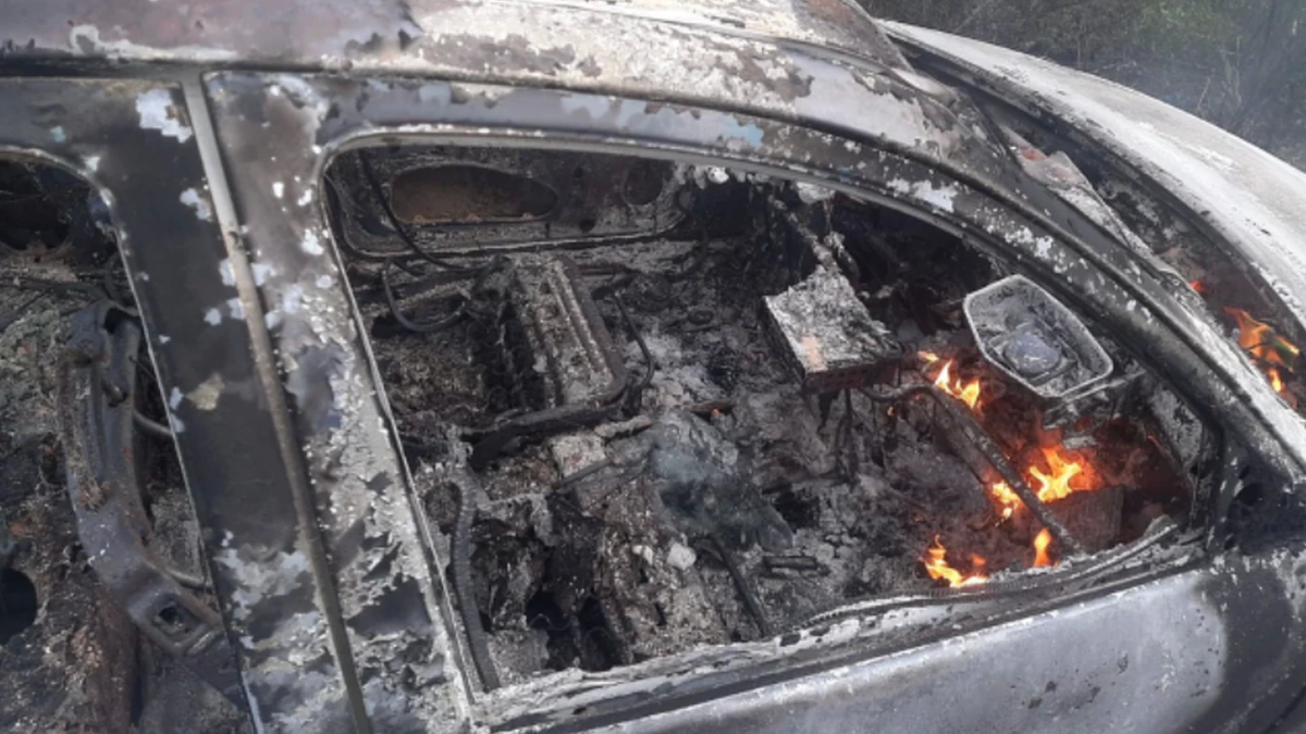 Horas más tarde el vehículo fue hallado. El Chevrolet Corsa apareció incendiado en la avenida del Té, ex ingreso al barrio Nemesio Parma.