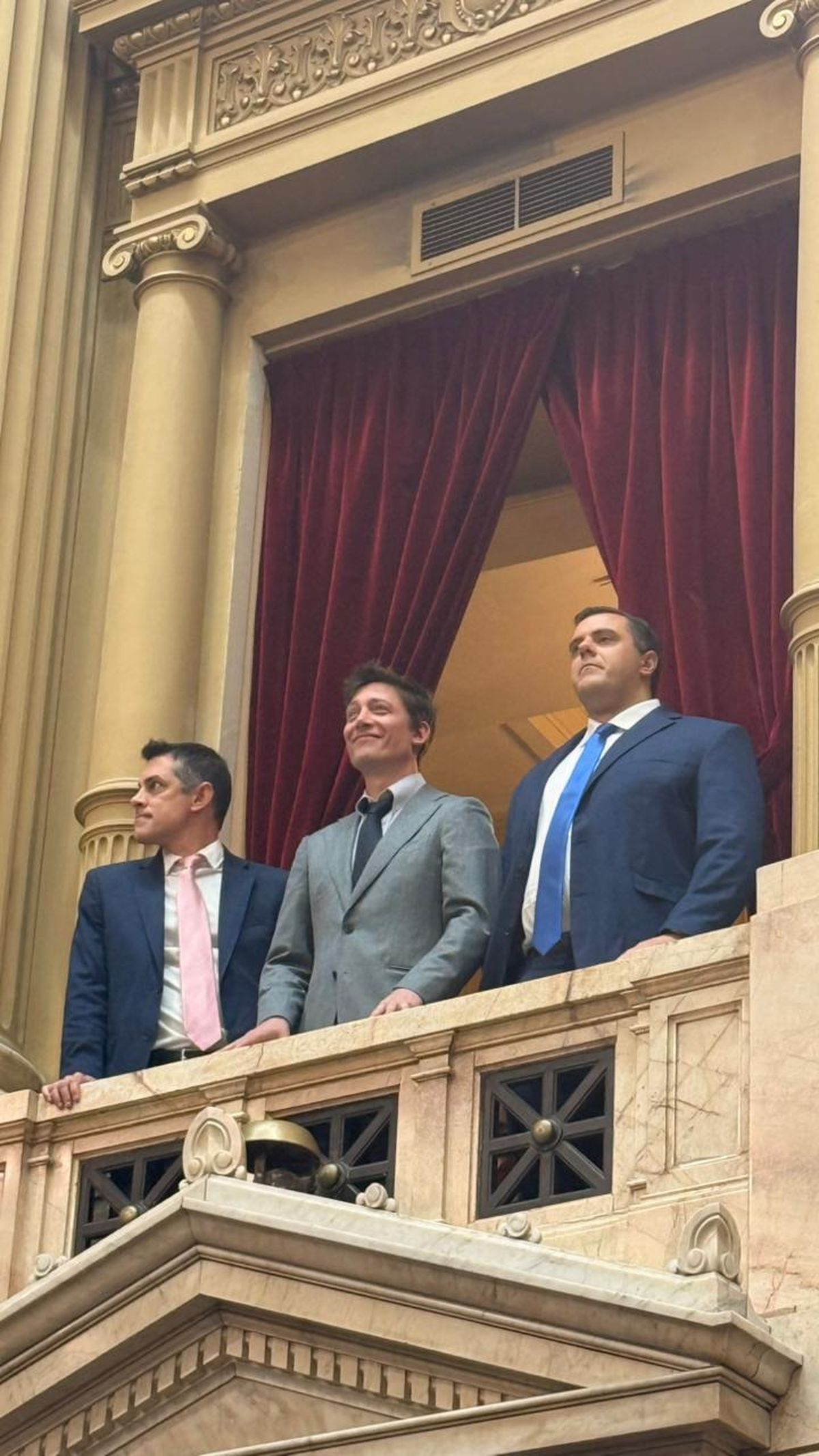 En el entorno más cercano al Presidente se ubicaron su asesor estratégico Santiago Caputo y el secretario de Justicia Sebastián Amerio. Además, llamó la atención la presencia del influencer libertario conocido como Gordo Dan, habitual defensor del Gobierno en redes sociales.