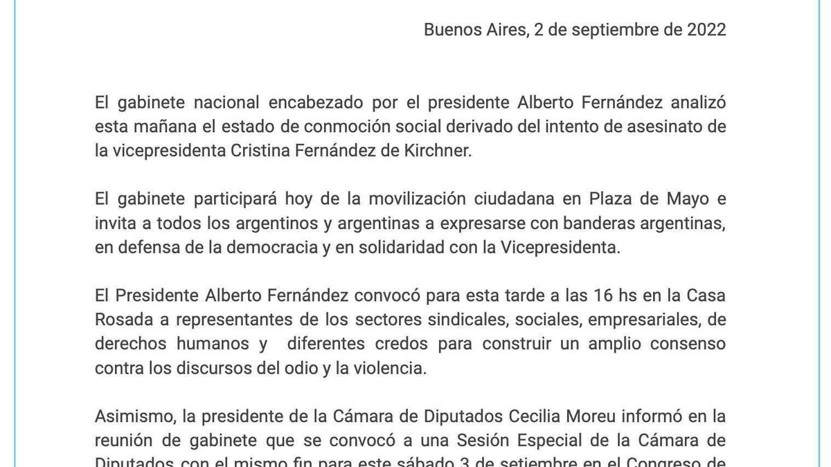 La vicepresidenta Cristina Kirchner sufrió un intento de asesinato de parte de un hombre que intentó dispararle con un arma de fuego y luego fue detenido por personal policial, en momentos en que la titular del Senado saludaba a militantes que se habían concentrado en la puerta de su domicilio en el barrio porteño de Recoleta. Toda la información del atentado, EN VIVO: el minuto a minuto.