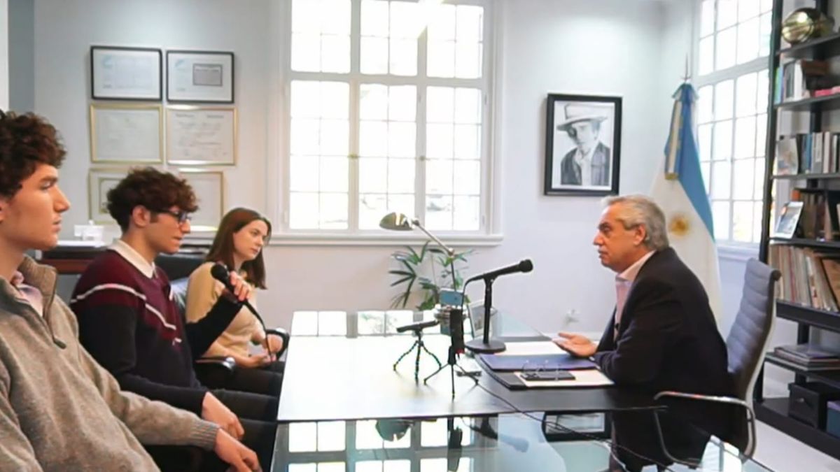 Alberto Fernández dio una entrevista a un grupo de jóvenes militantes en Olivos y habló sobre su retirada del poder el 10 de diciembre. Foto captura de pantalla..jpg