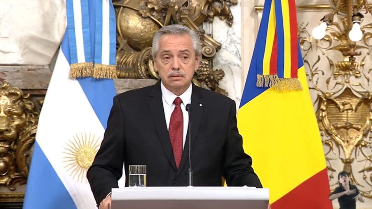 Alberto Fernández en declaraciones a la prensa en el Salón Blanco de la Casa Rosada. Foto Captura.jpg