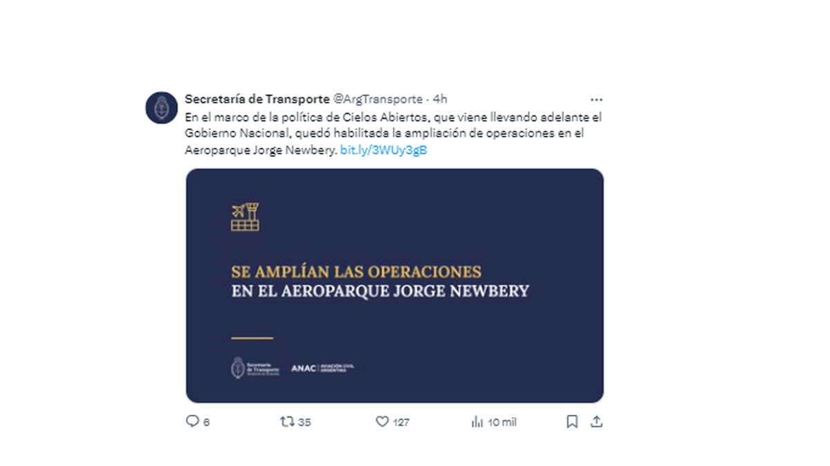 Según los considerandos de la resolución 240 de la ANAC, se habilita “la operación en Aeroparque de vuelos internacionales (de carácter regional) que efectúen escalas comerciales previas, intermedias y posteriores en países que no sean los del origen de la línea área que las realiza”.