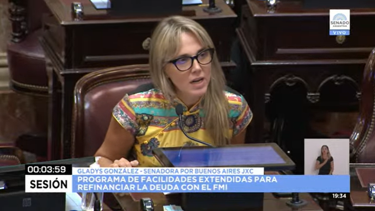 La senadora nacional de Juntos por el Cambio Gladys González (Buenos Aires) criticó al kirchnerismo por rechazar el acuerdo con el FMI.