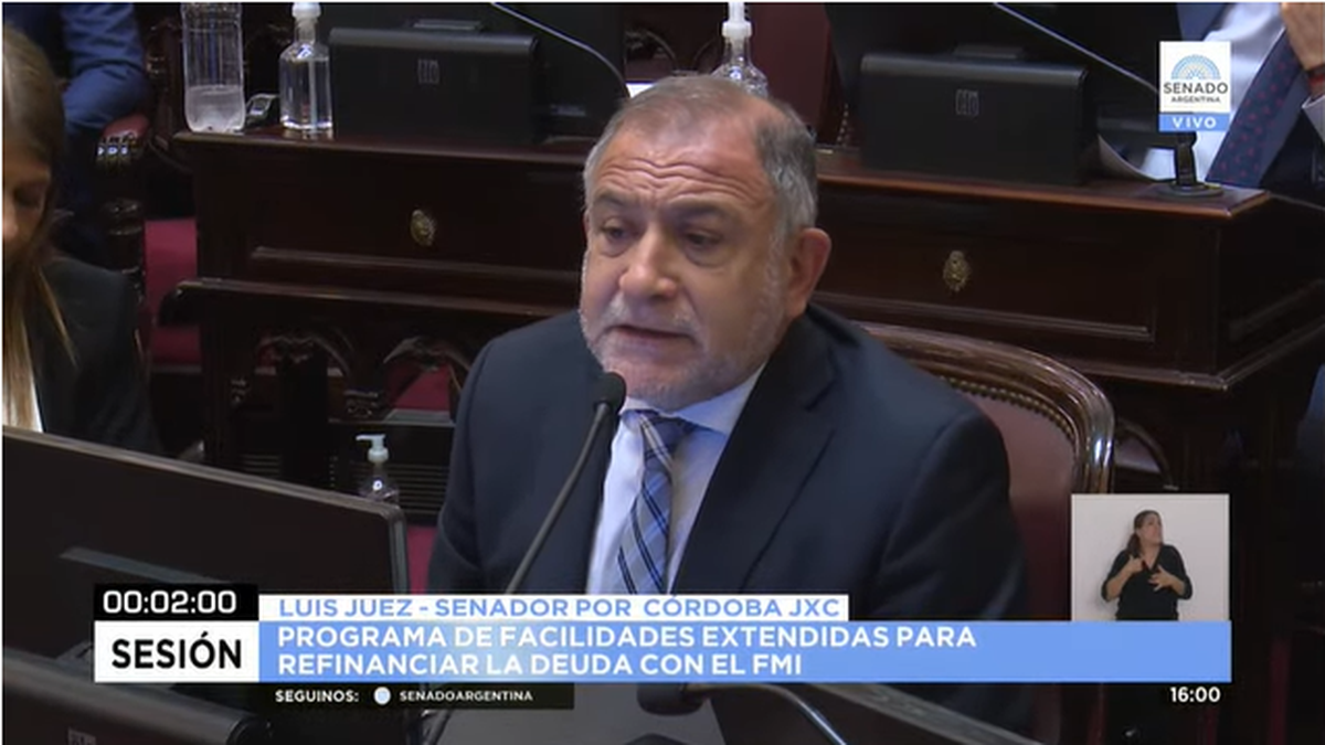 El senador de Juntos por el Cambio por Córdoba, Luis Juez, adelantó su respaldo al acuerdo con el FMI y confesó: "Nunca pensé que mi primer voto en esta nueva gestión iba a ser para acompañar una decisión del Gobierno".