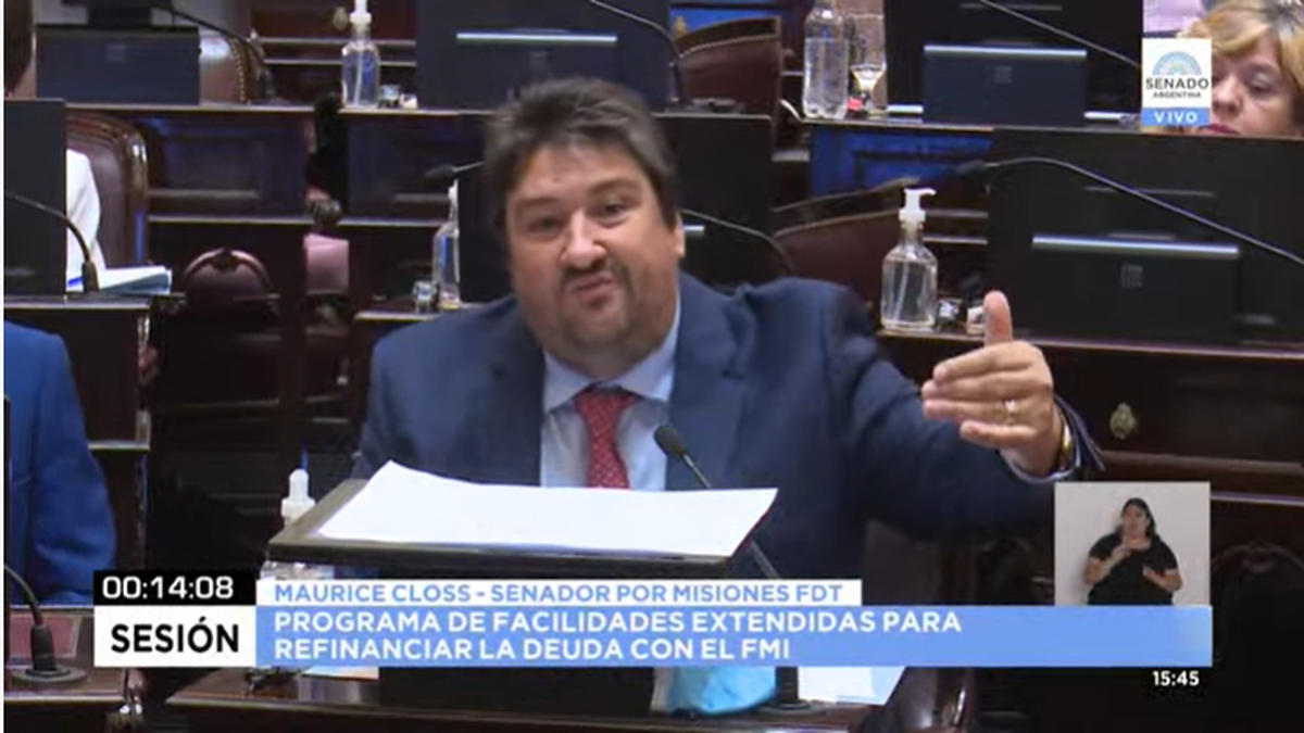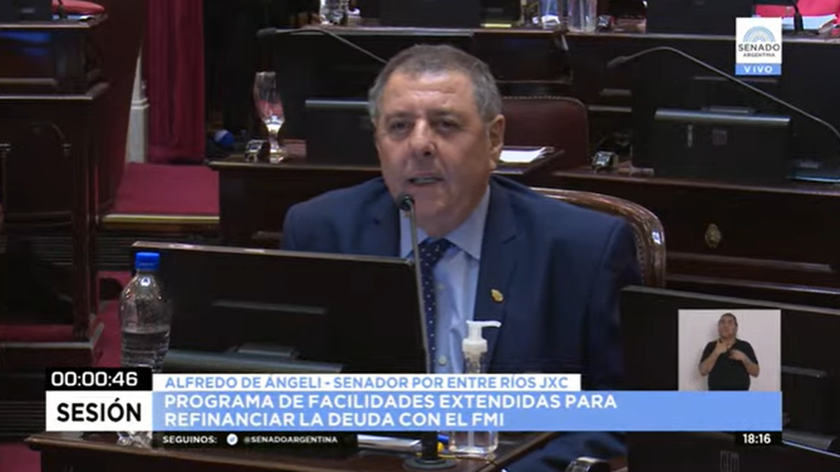“Esta tarde estamos votando la refinanciación del stand by tomado en 2018 a través de un nuevo crédito con el Fondo Monetario Internacional, nosotros la apoyamos. También decimos que no le corresponde al Congreso opinar sobre las políticas económicas”, agregó el senador.