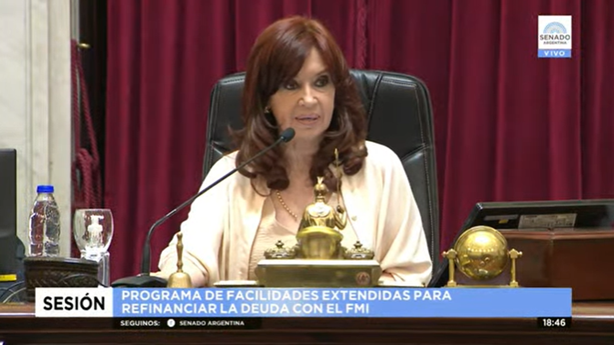 La vicepresidenta Cristina Fernández de Kirchner, titular del Senado de la Nación, retomó la conducción del debate por el acuerdo con el FMI, luego de haberse retirado después de la apertura.