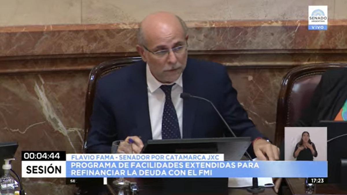 El senador de Juntos por el Cambio Flavio Fama (Catamarca) anunció su apoyo al acuerdo con el FMI pero al mismo tiempo criticó al presidente Alberto Fernández.