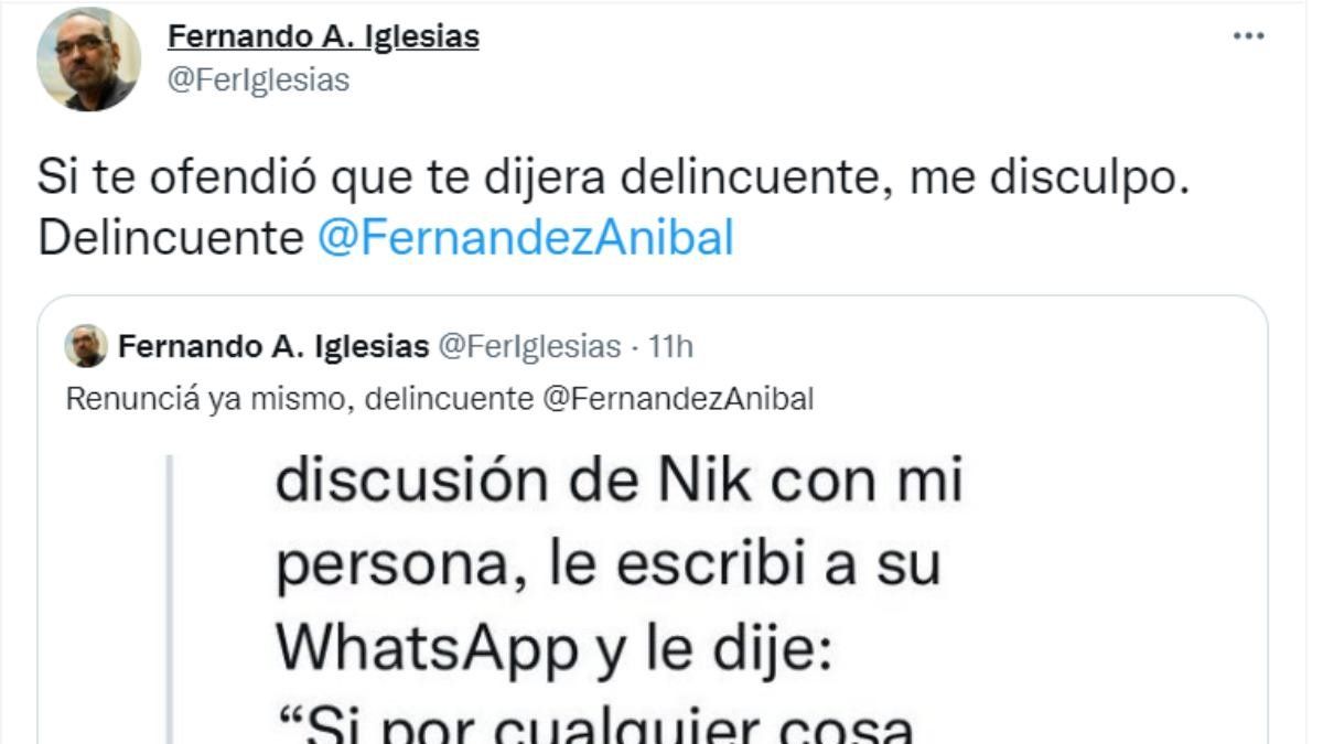 La polémica por el intercambio de tweets entre Aníbal Fernández y el dibujante Nik generó el rápido rechazo de toda la oposición. El interbloque de diputados de Juntos por el Cambio emitió un comunicado y hubo expresiones de sus máximos referentes como Mario Negri, Patricia Bullrich, entre otros. Pero otra vez, el más encendido fue Fernando Iglesias. El polémico diputado no solo criticó sino que fue un paso más allá.