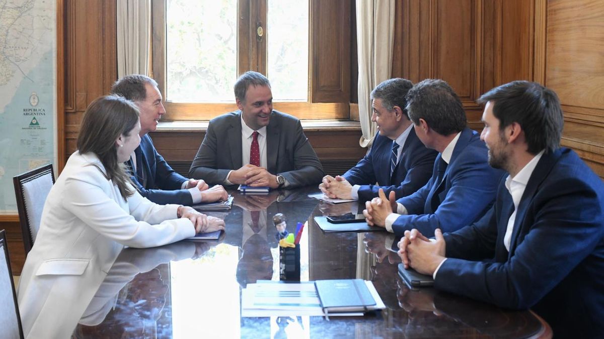 Manuel Adorni, Diego Santilli y Jorge Macri, se reunieron en Casa Rosada. Foto Presidencia