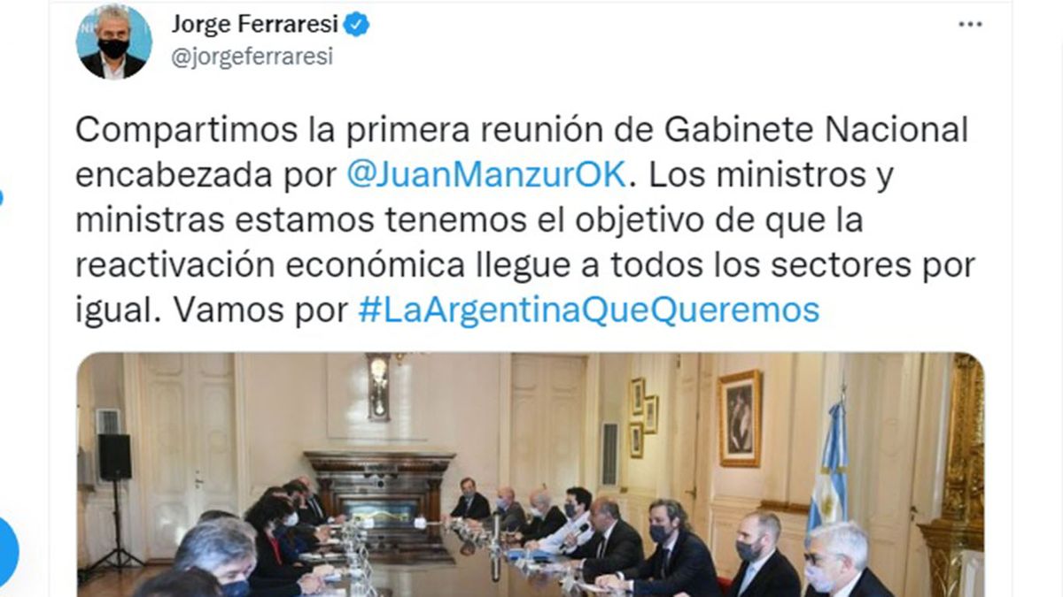 En tanto, Guerrera señaló que la reunión de Gabinete de esta mañana "marca una nueva etapa". "Esta reunión nos pone a todos en un trabajo que no es solamente de cara a las elecciones sino el trabajo que veníamos hablando de cómo salíamos hacia la pospandemia. Estamos empezando a tener muy buenas noticias", dijo.