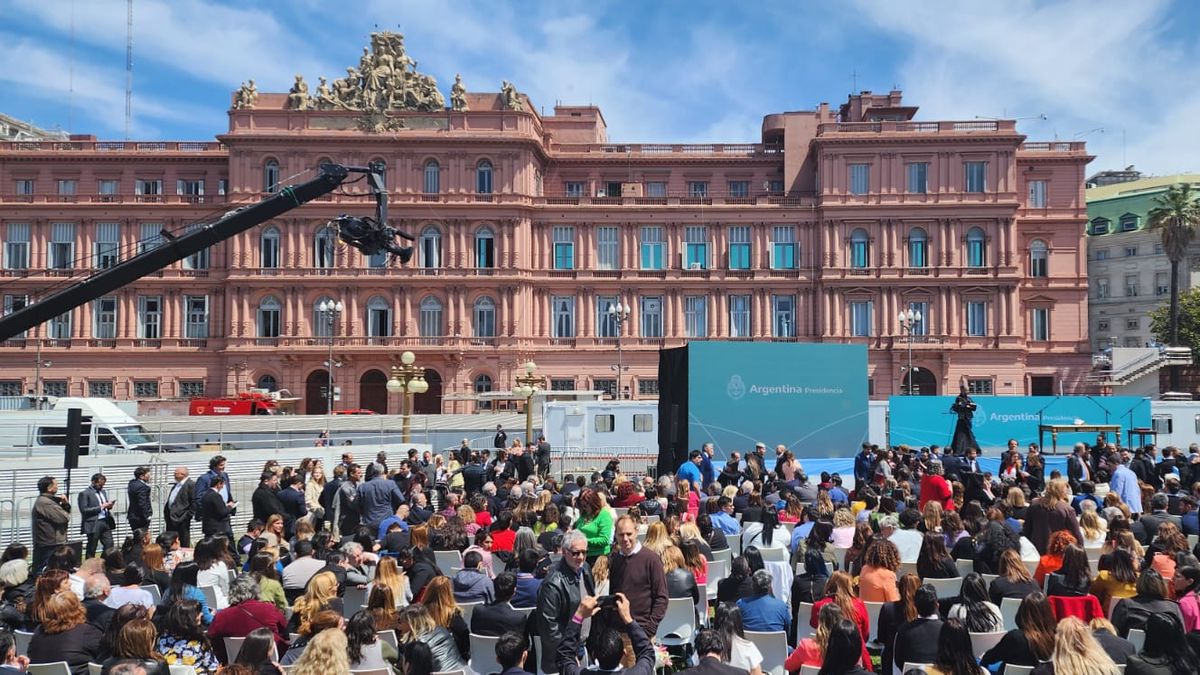 Todos lo escucharon el llamado a la "unidad" del presidente, sentados entre los invitados al acto en el Parque Colón, en la patio trasero de la Casa Rosada.