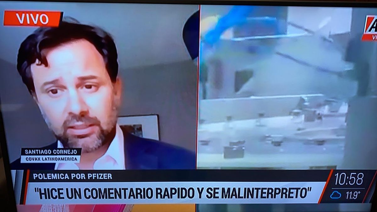 Durante su disertación, Santiago Cornejo, como director del mecanismo COVAX para América Latina y Director de financiamiento de inmunizaciones de la Alianza Mundial para Vacunas e Inmunización (GAVI), dijo que Argentina no aceptó el envío de más de 100 mil dosis de la vacuna Pfizer que estaban destinadas al país.