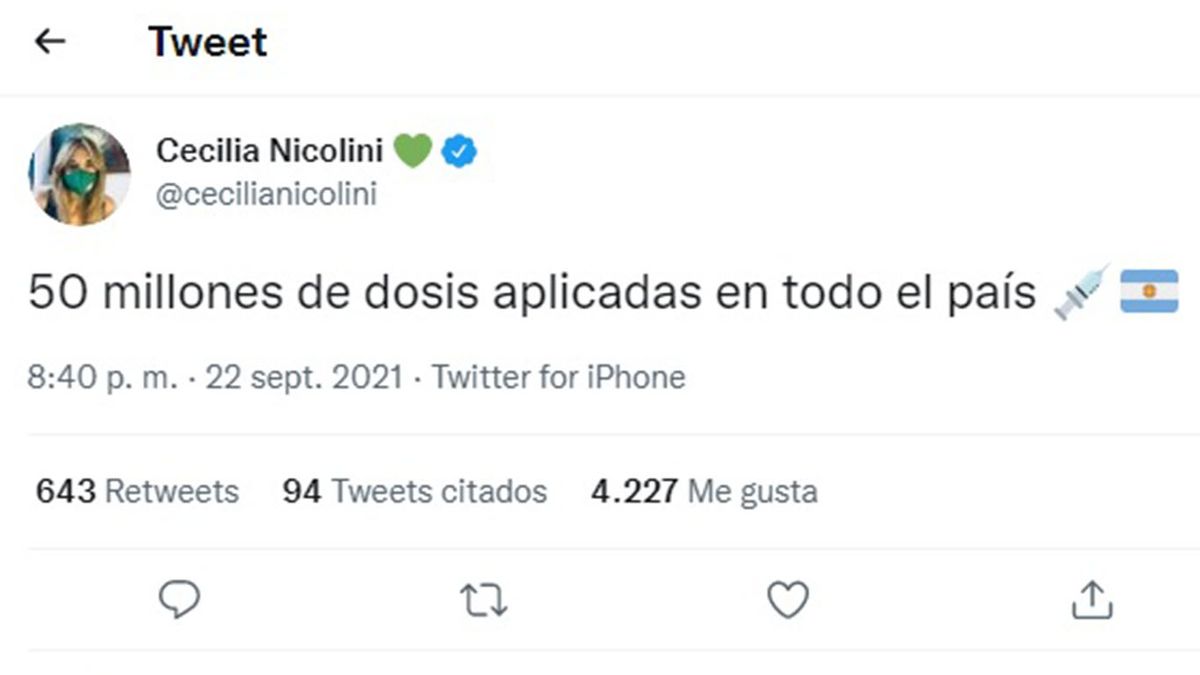 Argentina superó las 50 millones de vacunas contra el coronavirus aplicadas en su población. Según los datos actualizados esta mañana del Monitor Público de Vacunación, se distribuyeron en todo el país un total de 54.503.809 dosis y se aplicaron 50.072.842.