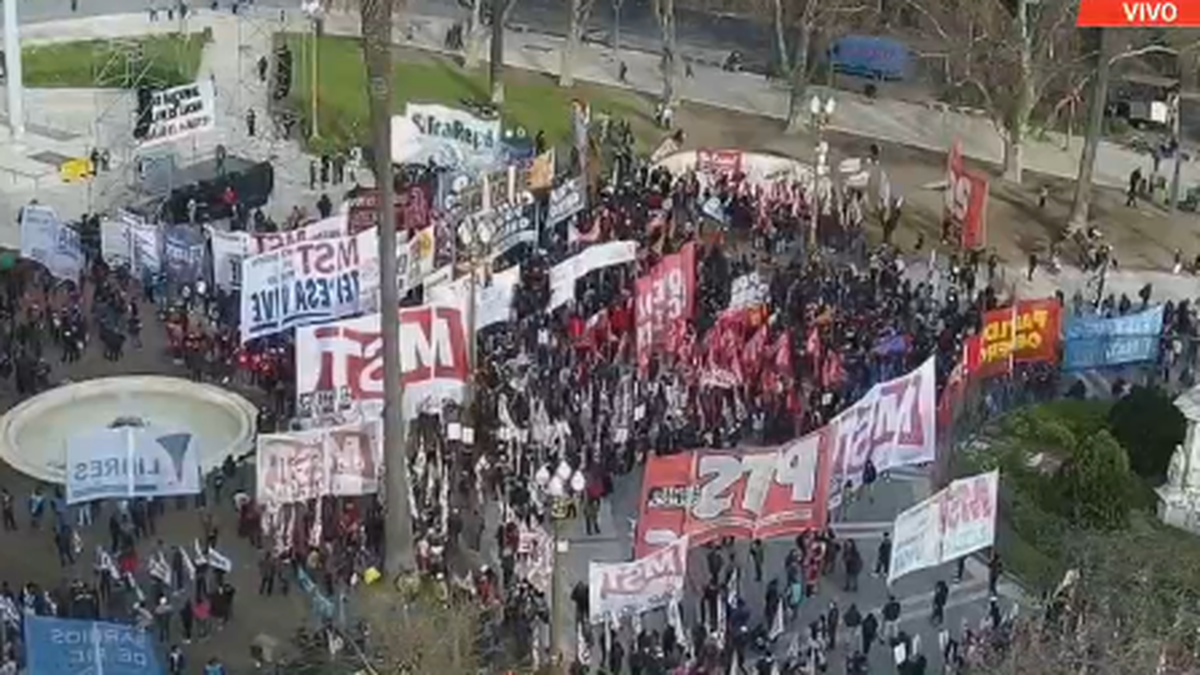 En tanto, en el cruce de las avenidas San Juan y 9 de Julio se concentraban los movimientos sociales y sectores pertenecientes al Movimiento Evita y Somos Barrios de Pie y columnas de otras agrupaciones seguían llegando a ese lugar desde Constitución.