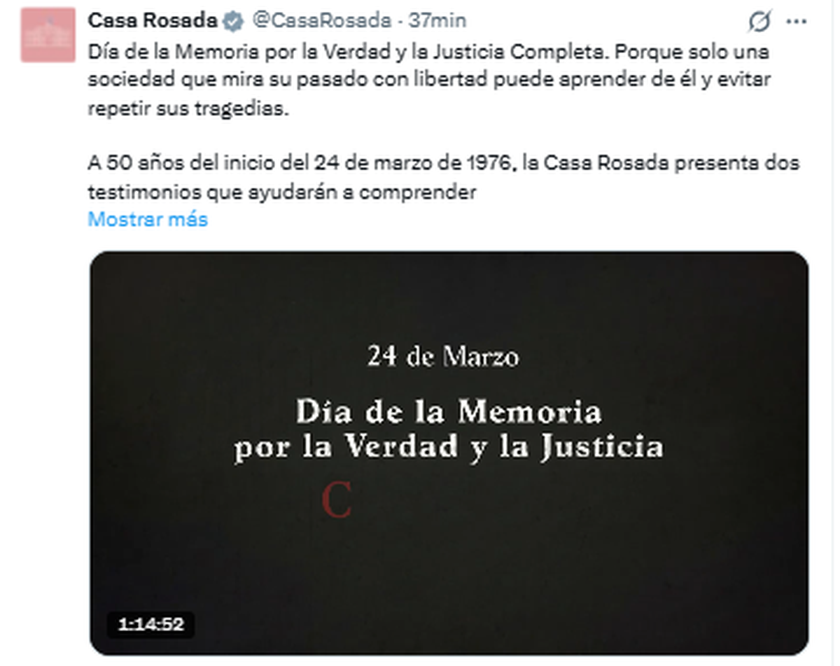 "Memoria completa": el video que publicó el Gobierno a 50 años del golpe militar del 24 de marzo