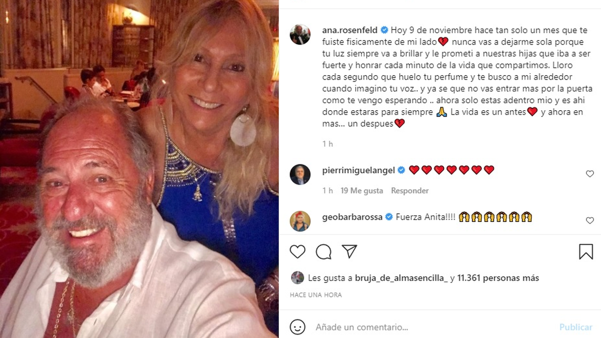"Hoy 9 de noviembre hace tan solo un mes que te fuiste físicamente de mi lado. Nunca vas a dejarme sola porque tu luz siempre va a brillar y le prometí a nuestras hijas que iba a ser fuerte y honrar cada minuto de la vida que compartimos", comenzó su posteo en Instagram Ana.