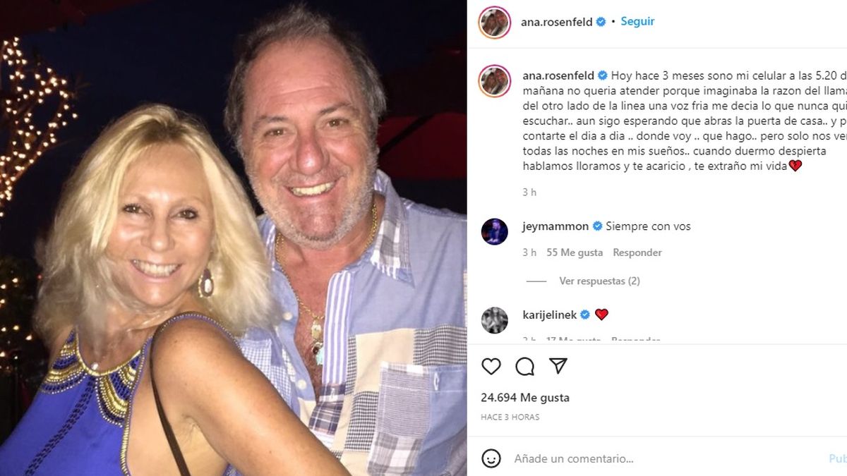 La abogada Ana Rosenfeld compartió un desgarrador mensaje en Instagram a un mes de la muerte su marido Marcelo Frydlewski.