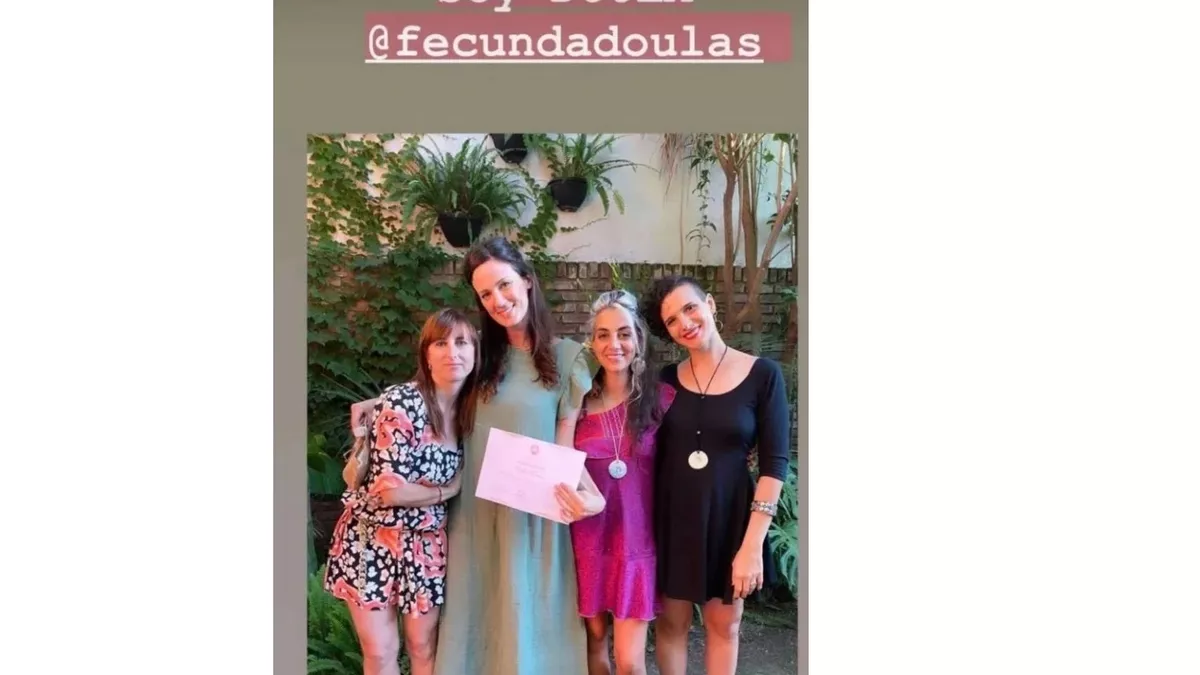 "Soy doula", reflejó la modelo y conductora en una de sus historias de Instagram posando con su diploma correspondiente y junto a sus compañeras de cursada.