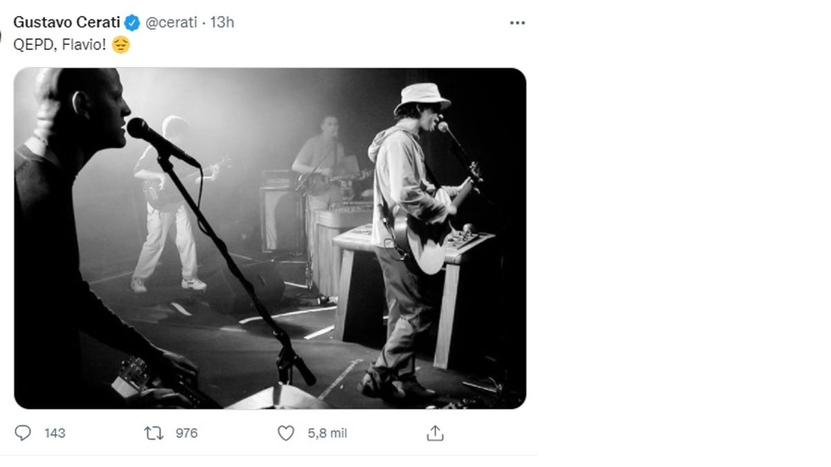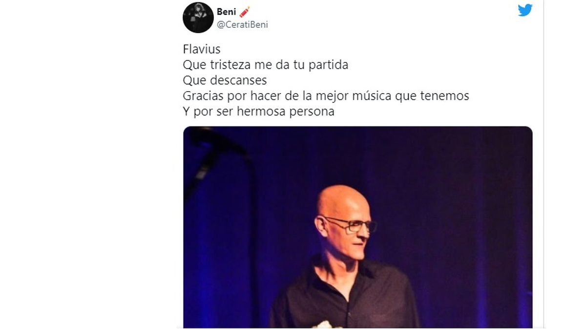 Benito, el otro hijo de Cerati, utilizó su cuenta de Facebook desde donde expresó: “Flavius, qué tristeza me da tu partida. Gracias por hacer de la mejor música que tenemos y por ser hermosa persona”.