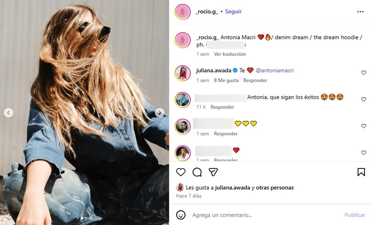Como era de suponer, el primer comentario no fue otro que el de su mamá, Juliana Awada, que inmediatamente etiquetó a su hija Antonia y le dedicó un "Te amo" con un emoji de un corazón rojo.