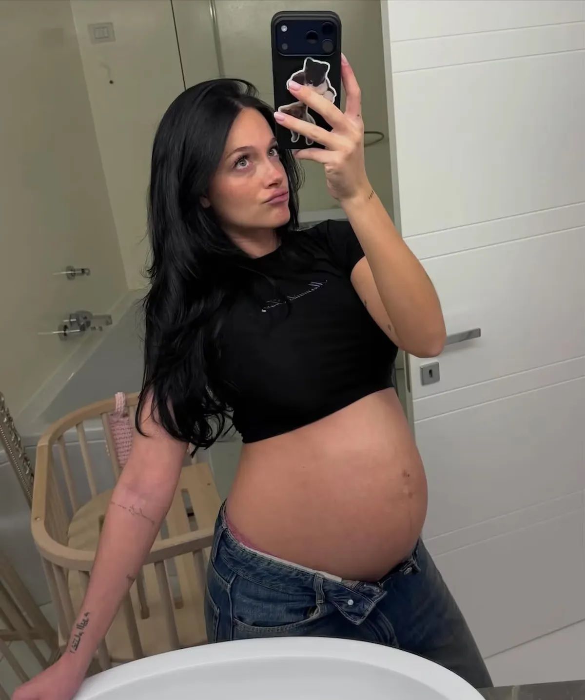 En una de las fotos que publicó, Oriana eligió un top y un jean, y acompañó la imagen con una frase breve pero significativa: “Casi una mami”. El posteo no tardó en llenarse de comentarios de amigos y figuras del espectáculo que celebraron este momento tan esperado. Tini Stoessel respondió con emojis de corazones, Clara Alonso escribió “Belleza”, Lizardo Ponce se sumó con un efusivo “Hermosa hermosaaa”, mientras que Stefi Roitman dejó un espontáneo “LPM. Hermosa”. Con humor y ternura, Débora D’Amato también dijo presente al comentar “Panzona hermosa”.