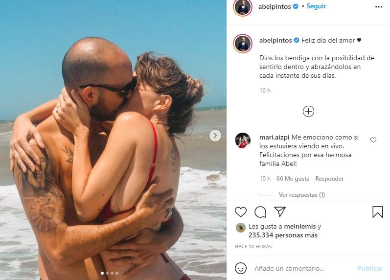 "Feliz día del amor. Dios los bendiga con la posibilidad de sentirlo dentro y abrazándolos en cada instante de sus días", precisó Abel en su posteo de Instagram.