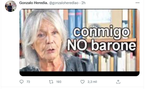 El actor lo hizo desde Twitter con un meme de Beatriz Sarlo que indica “conmigo no Barone”.