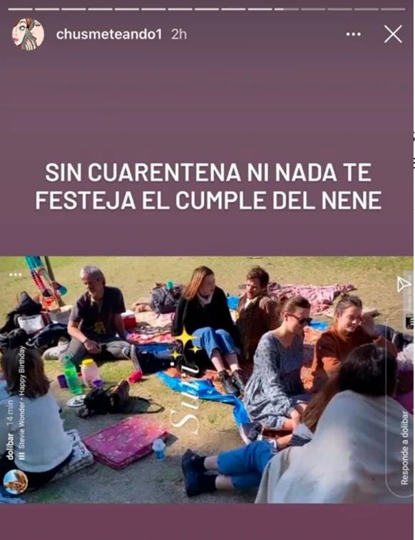 La cuenta denunciante agrega: “Dolores y su hermana acaban de llegar de Europa. Sin cuarentena ni nada te festeja el cumple del nene. Me alegro que se lleven bárbaro pero no dejaron pasar ni 24 horas para abrazarse”.