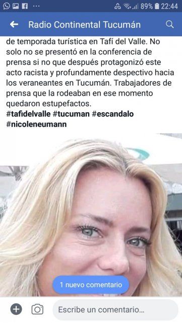 La modelo Nicole Neumann fue acusada por un medio tucumano de lanzar una frase racista mientras participaba de un evento en Tafí del Valle. A partir del escrache, los tucumanos están muy enojados y hasta quieren declararla "persona no grata".