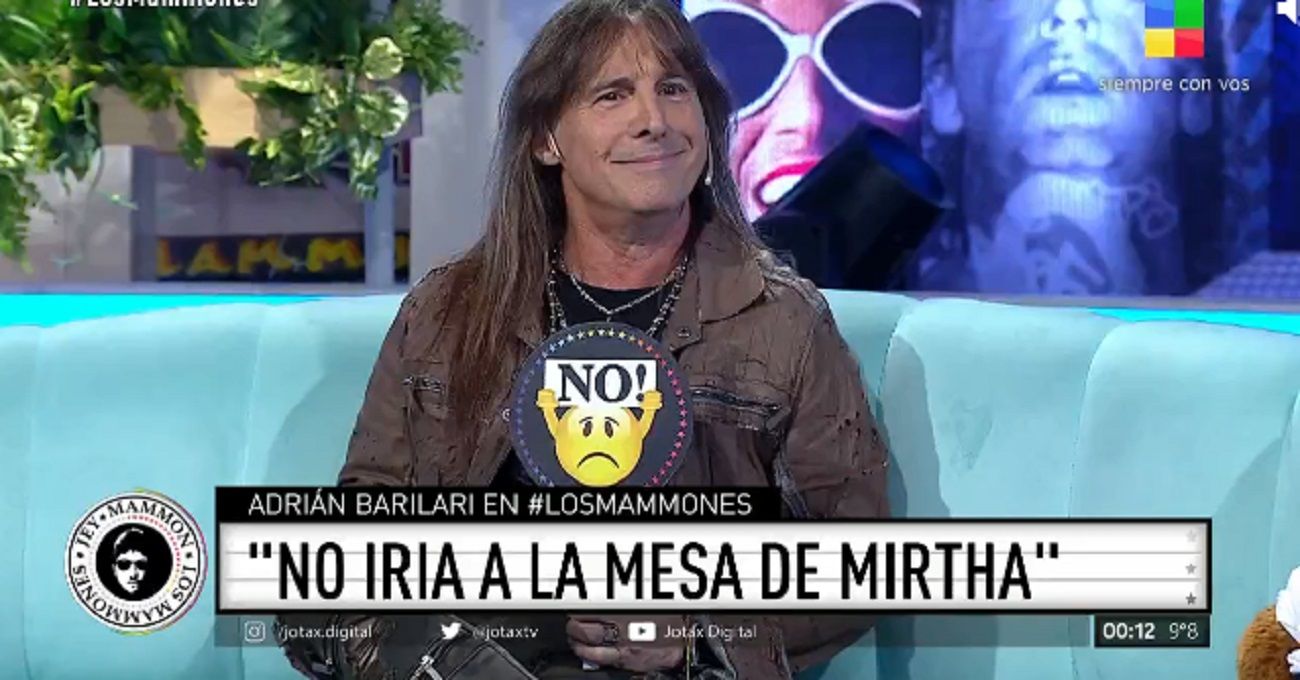 Adrián Barilari estuvo como invitado el viernes a "Los Mammones", América, y sorprendió al contestar que no estaría en la mesa de Mirtha Legrand ni le cantaría en su cumpleaños ni por un millón de dólares.