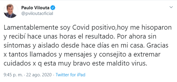 Luego se confirmó que el hisopado que les realizaron en el sanatorio San José dio positivo.