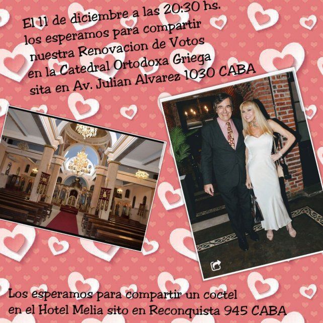"Renuevo votos de casamiento con Ricardo García, mi marido, en la misma iglesia que cuando nos casamos hace 22 años, que fue en la Catedral Ortodoxa Griega", manifestó.