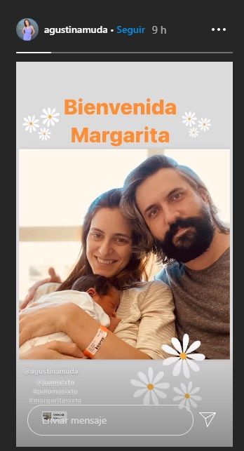 "Bienvenida #margaritasixto! Gracias por elegir ser parte de esta familia que te ama incondicionalmente", agregó Agustina, con una foto de su hija recién nacida.