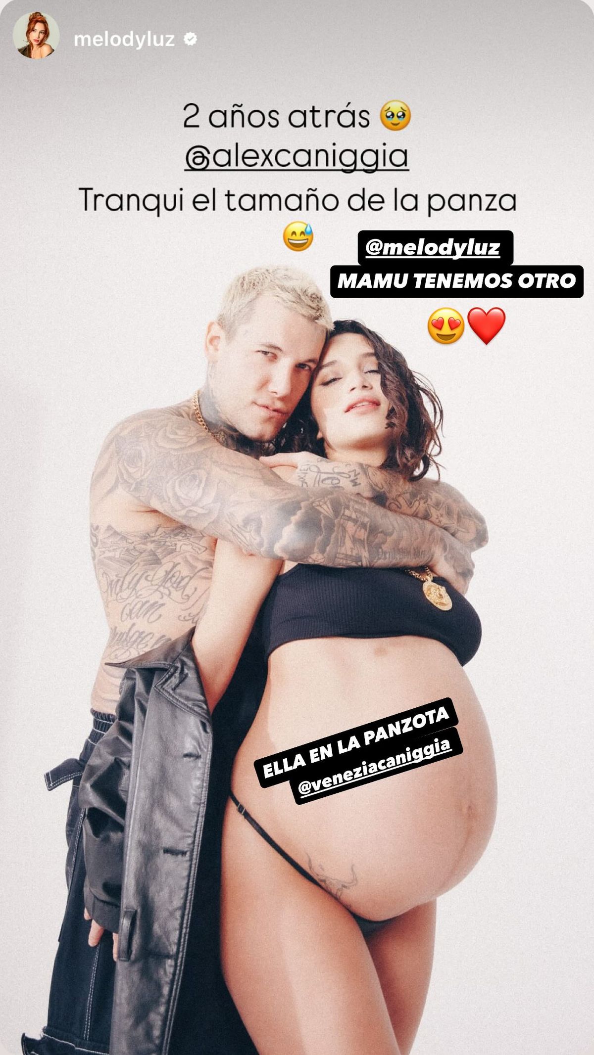 En sus historias de Instagram, el mediático compartió una foto retro junto a Melody durante su embarazo, abrazados y sonrientes. Pero lo que más llamó la atención fue el texto que acompañó la imagen: “Mamu, tenemos otro”.