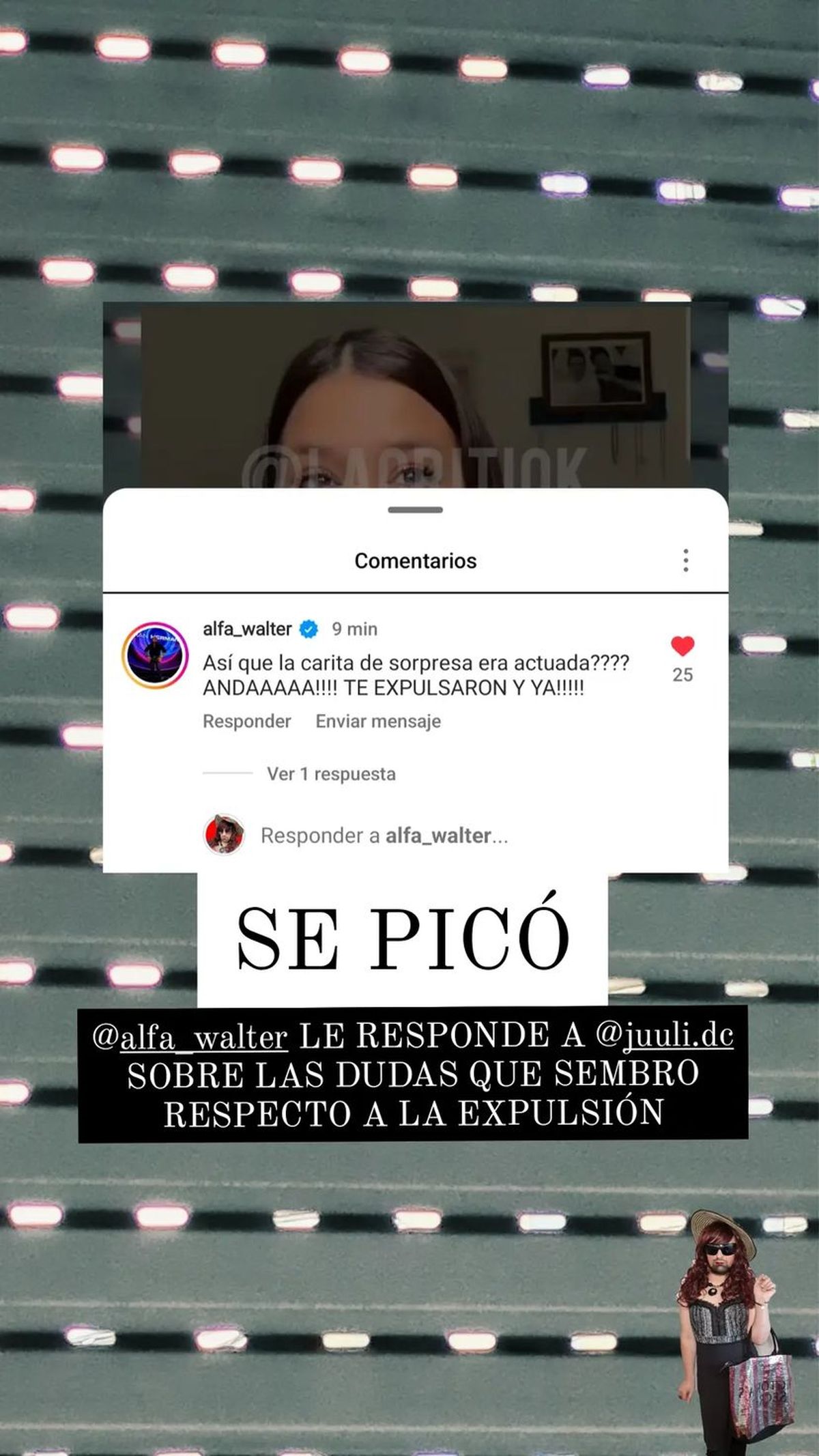 Esto no quedó acá, porque Alfa, quien no soporta a Juliana, vio sus videos y le comentó: “¿Así que la carita de sorprendida era actuada? ¡Andá! ¡Te expulsaron y ya!”.