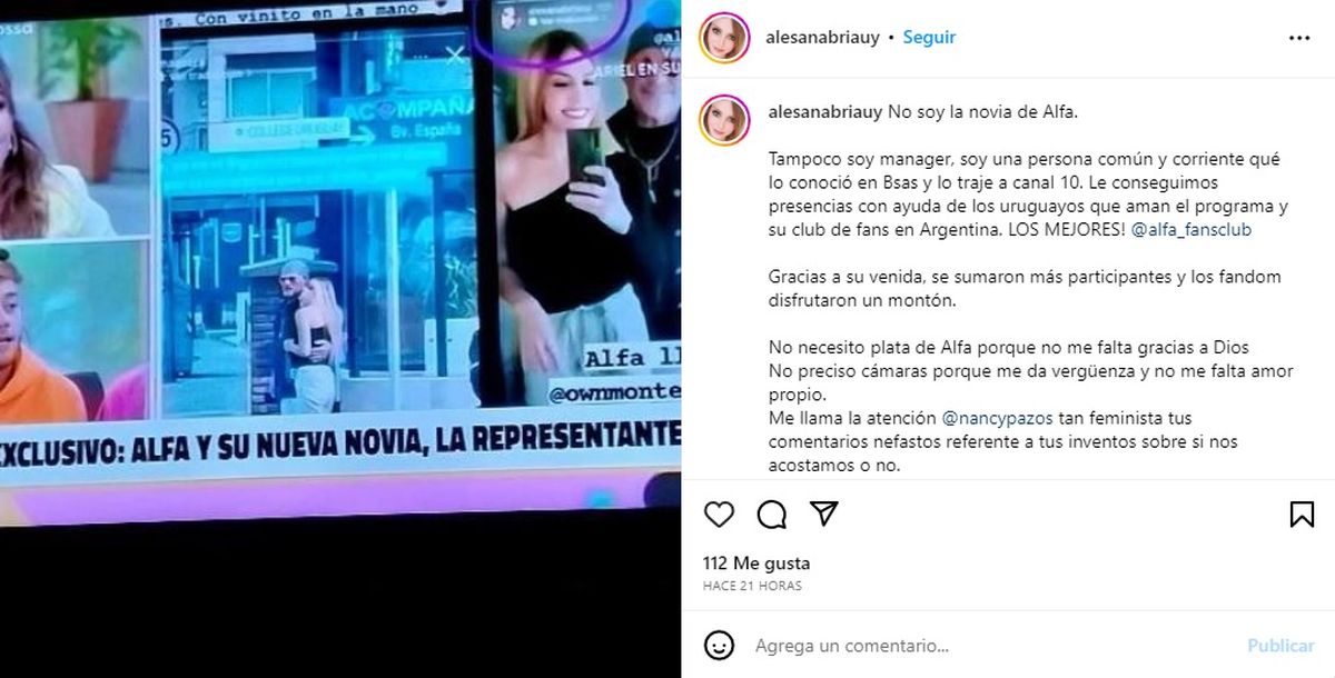 Posteo Ale Sanabria desmiente romance con Alfa .jpg