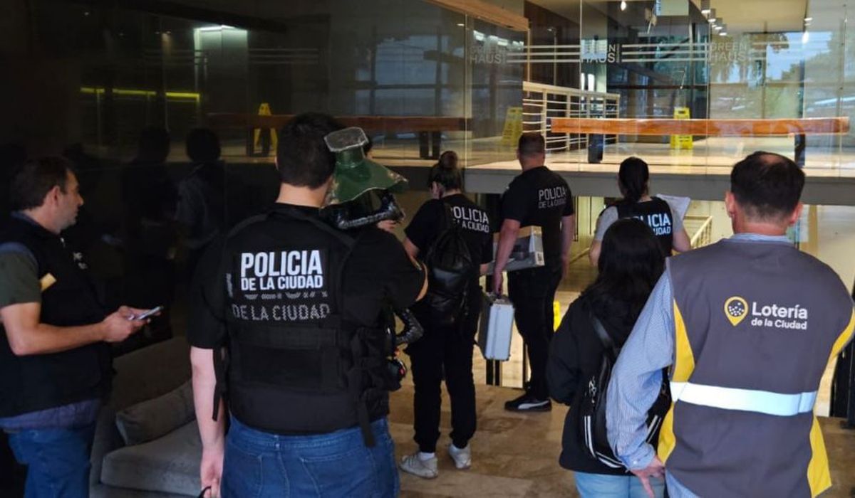 En tanto, en la otra imagen se aprecia el numeroso grupo de trabajadores de policía y lotería que intervinieron en el allanamiento de este este viernes.