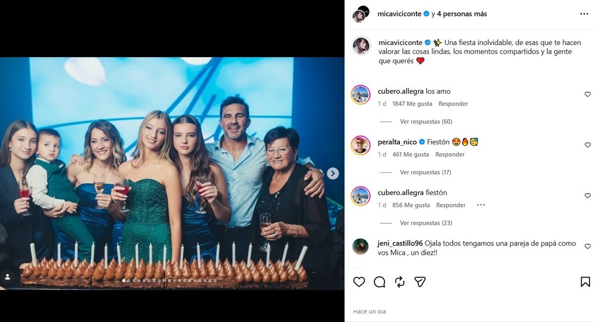 Finalmente, la adolescente vivió una celebración llena de glamour y emoción acompañada de sus seres queridos y de familiares y amigos de su papá y de su pareja, Mica Viciconte.