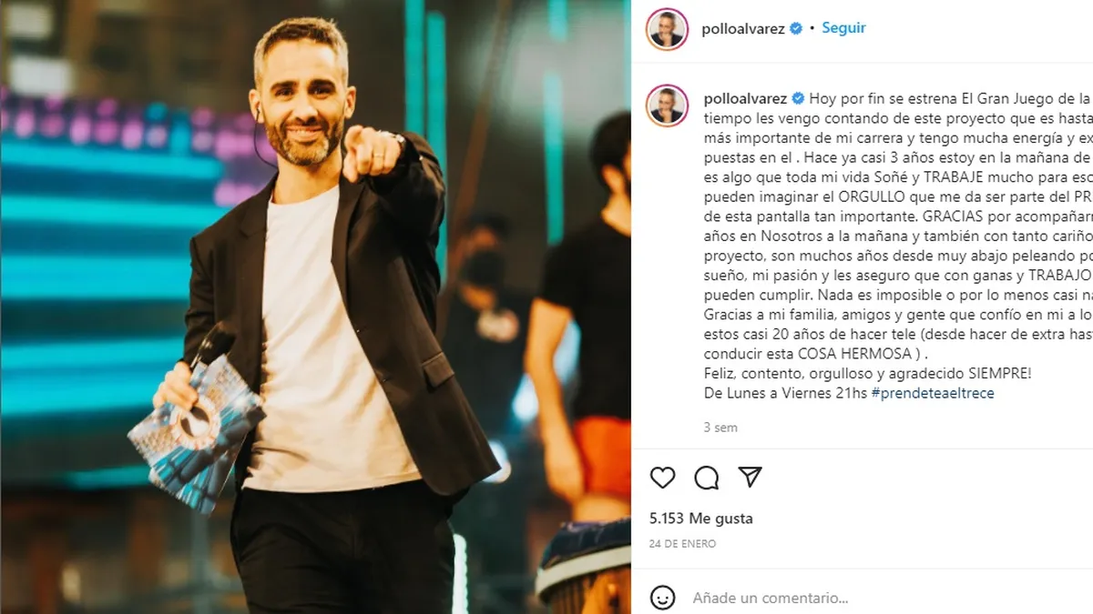 Y sobre el final se acordó del Pollo Álvarez: “Estoy esperando encontrarme con el Pollo Álvarez para que me pida perdón por las barbaridades que dijo sobre mí y sobre Ricardo”.