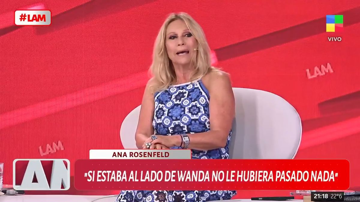 Es así que invitada a LAM (América TV), Rosenfeld contó que nunca estuvo de acuerdo en que Wanda contratase a Nicolás Payarola para que llevase adelante las denuncias penales que pretendía hacer contra su ex y padre de sus dos hijas, motivo por el cual Ana decidió dar un paso al costado en la representación legal de la mayor de las Nara en el divorcio del delantero del Galatasaray.
