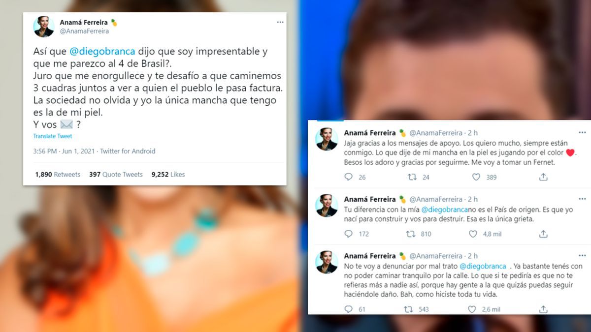 “Finalmente encontré a alguien que baila peor que yo”, fueron las palabras de la brasileña. "Anamá Ferreira primero que aprenda a hablar, habla peor que todos. Es impresentable, un mamarracho. En todo me parece demás. No me gusta cómo baila, parece el 4 de la selección de Brasil", fue la respuesta del panelista de Intratables, en defensa de su colega.