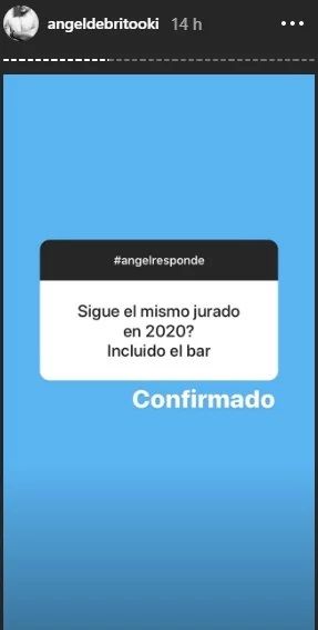 Ángel de Brito se encargó de anunciar la primera información. El periodista respondió a varias preguntas de sus seguidores, quienes están ansiosos por saber los nombres de las personas que integrarán el jurado, el BAR y también quiénes serán los participantes en 2020.