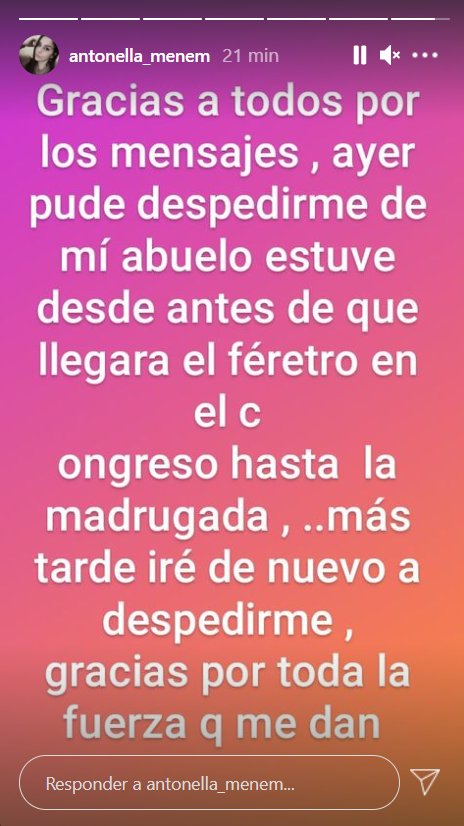 Ayer se mostró muy triste en redes sociales por el fallecimiento de su abuelo. Pero, por suerte, por la noche pudo ingresar el Congreso al velatorio.