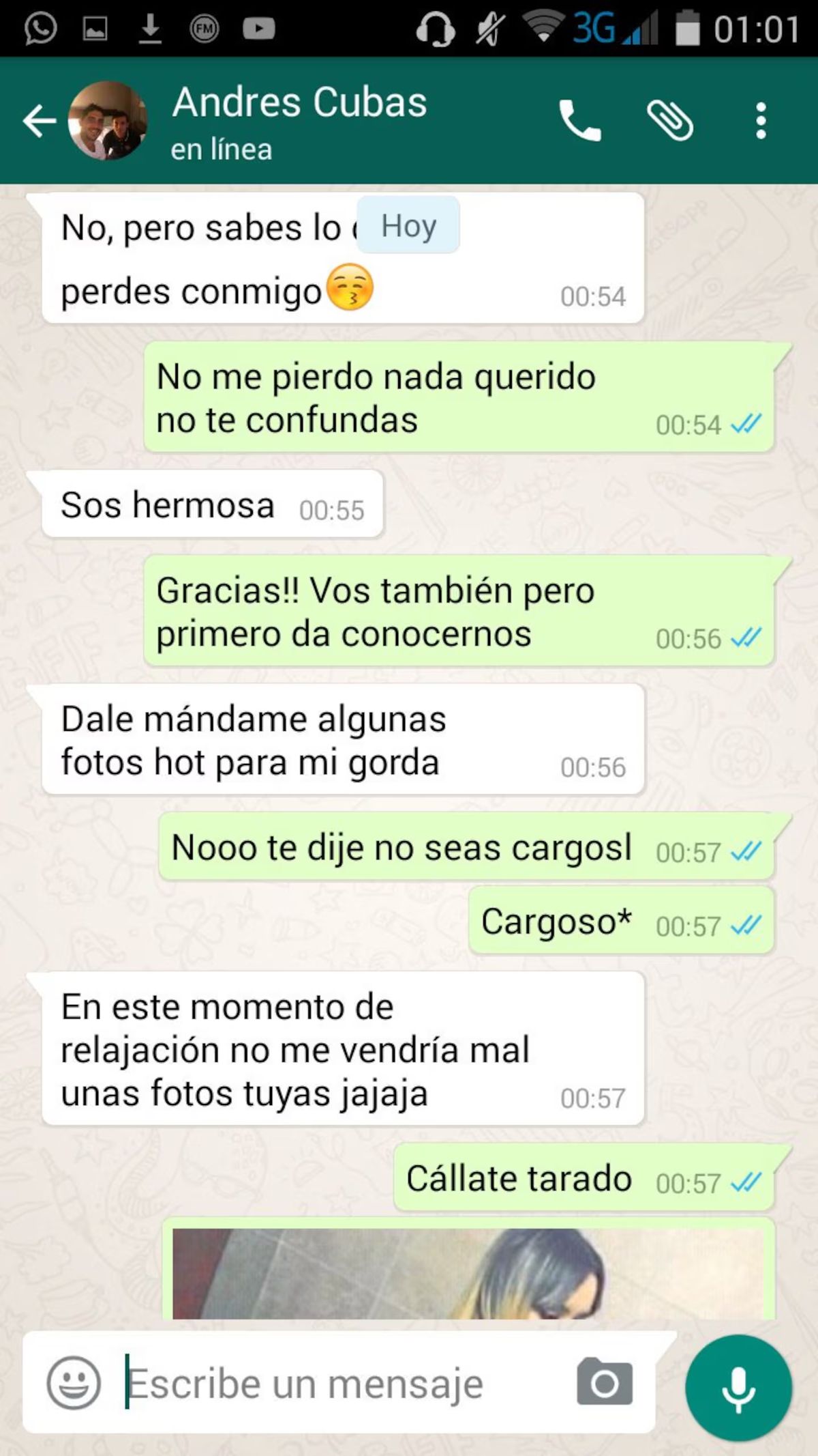 Sin embargo, él volvió a presionar: "Dale, mandame algunas fotos para mí, gorda". La cantante se mantuvo firme: "No, te dije que no seas cargoso". El futbolista insistió una vez más: "En este momento de relajación no me vendría mal algunas fotos tuyas, jaja".