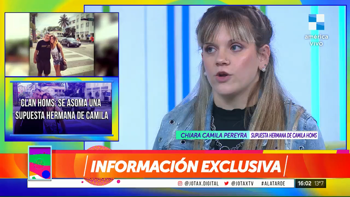Este miércoles en A la tarde, el ciclo de Karina Mazzocco en América TV, contaron con la presencia de Chiara Camila Pereyra, una joven que asegura ser la hija no reconocida de Horacio Homs, el papá de Camila Homs, ex pareja de Rodrigo de Paul.