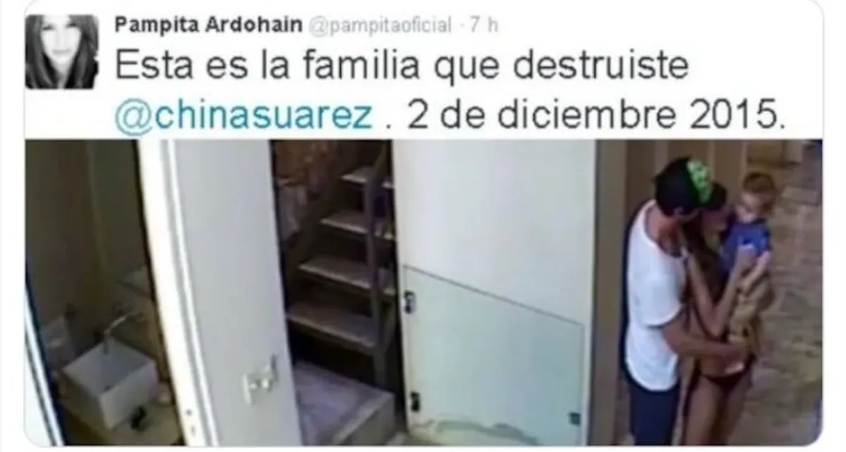 “Esta es la familia que destruiste”, escribió Pampita en aquel mensaje que se volvió histórico en la ex red del pajarito, etiquetando directamente a la China y acompañando el texto con imágenes de una cámara de seguridad de su casa. Años después, ese posteo sería recordado indirectamente por Wanda Nara, cuando inauguró el WandaGate en octubre de 2021 con su placa negra: “Otra familia que te cargaste por zorra”.