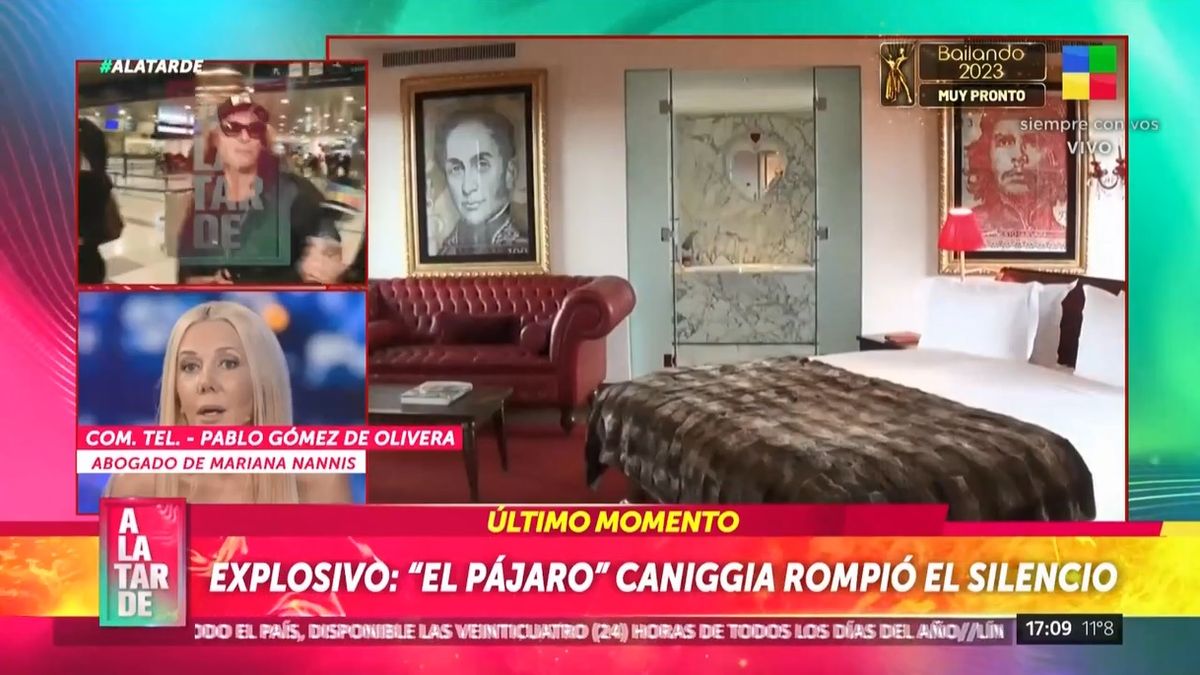 “No fue un desalojo. El día 4 le fue informado a Alex Caniggia que viaja el día 6, entonces a su hijo, no le tuvo que decir nada, él se fue por su propia voluntad”, comenzó explicando el letrado.
